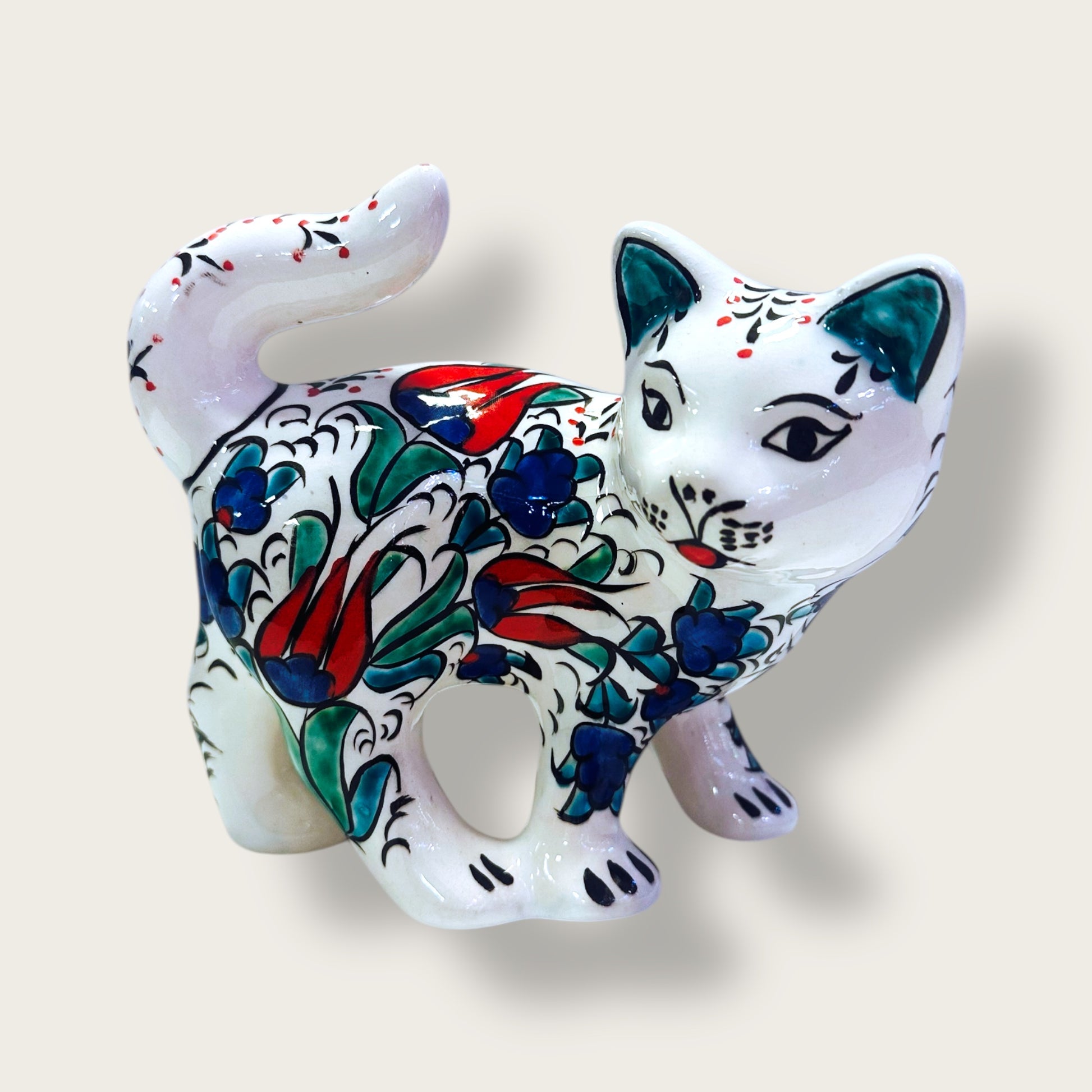 These exquisite hand-painted ceramic cat figurines beautifully blend traditional Turkish and Ottoman ceramic artistry with the charm of feline elegance. Adorned with intricate floral and geometric patterns, each piece is a unique decorative treasure, perfect for collectors, cat lovers, and those who appreciate handmade craftsmanship.